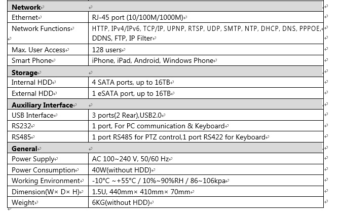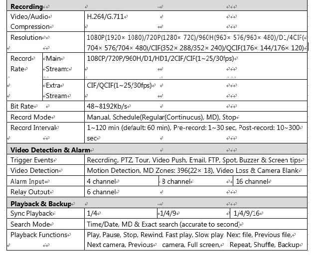 output HCVR7404/7408/7416L:All channel Max 1080P