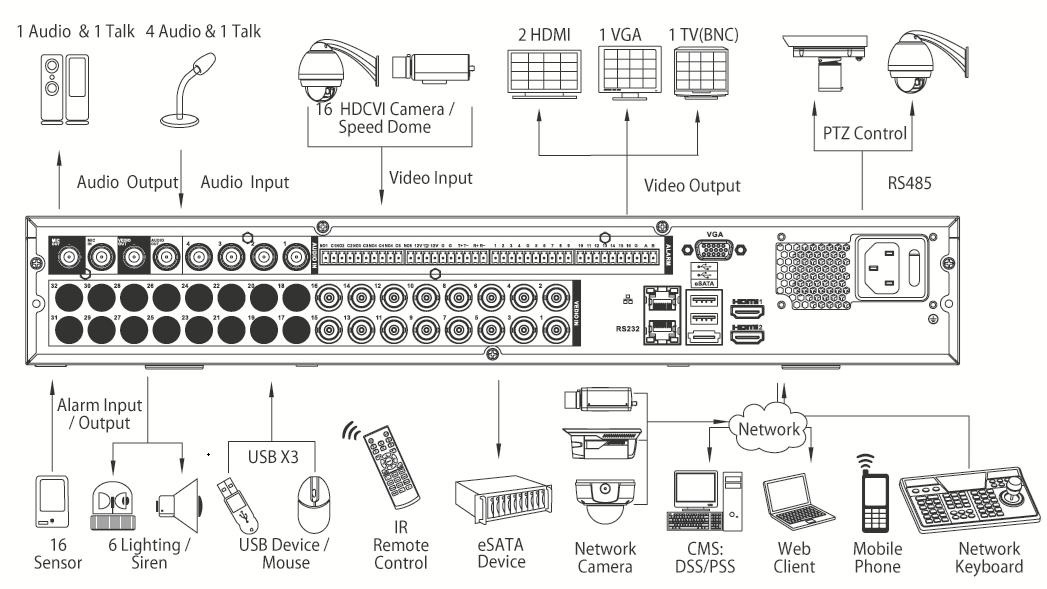 Tribrid: Each channel supports HDCVI/Analog/IP Video input